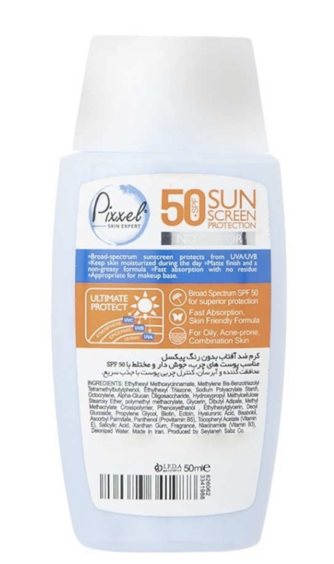 ساير ويژگي ها : فرمولاسیون سبک و فاقد چربی محافظت گسترده از پوست در برابر اشعه آفتاب جذب سریع روی پوست بدون ایجاد رد سفیدی مناسب برای پوست مستعد جوش حاوی ترکیبات آبرسان جلوه مات روی پوست قابل استفاده قبل از آرایش فرمولاسیون ویتامینه
